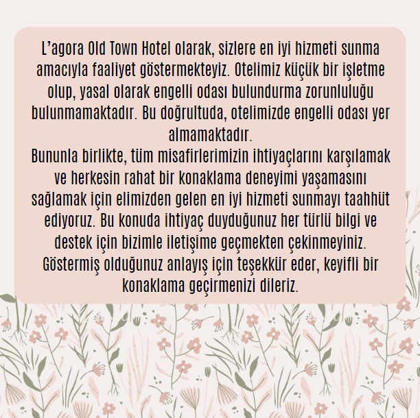 İzmir’in sayısız güzelliklerini yaşamak için turistik ziyaretlerinizde ya da iş gezilerinizde Sizleri L’agora Old Town Hotel’de konaklamaya davet ediyoruz.